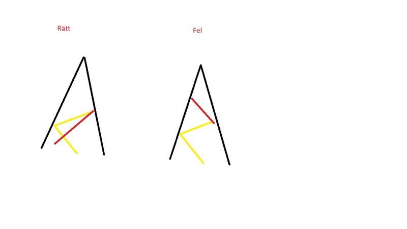 Var lite noggrann! En vinkel som är given som 45 grader ska du rita som hälften av en rät vinkel.