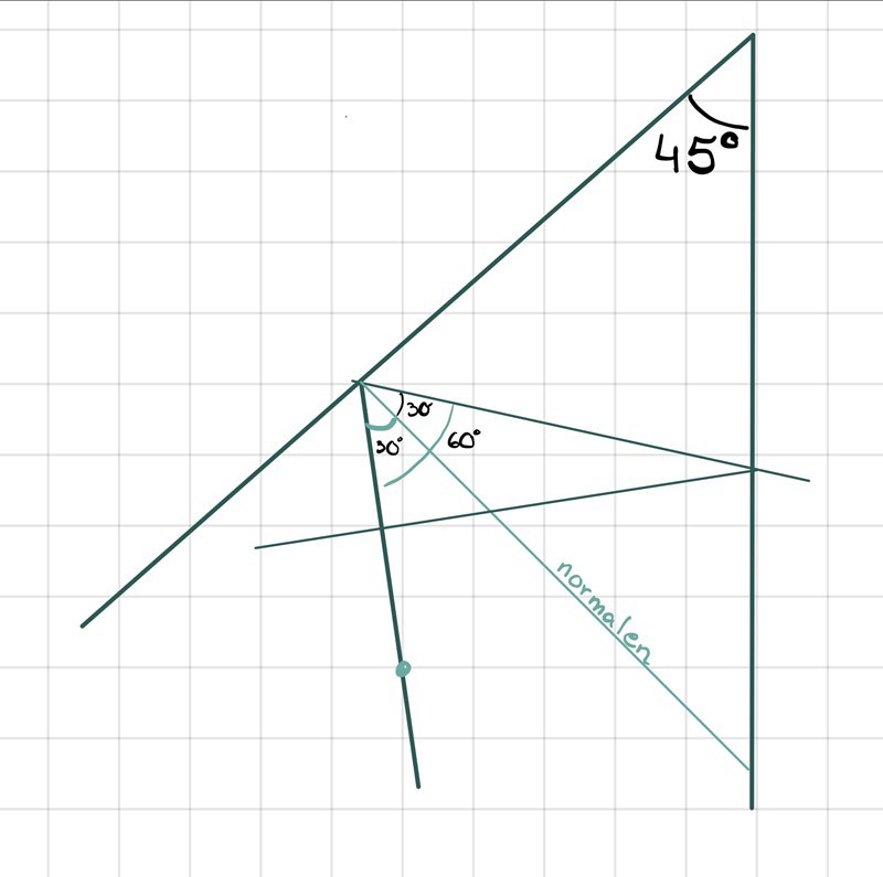 Va? Jag förstår ju att vinkeln mellan speglarna ska vara 45 grader men det är inte det jag har problem med? Jag försöker förstå hur man kan förutsäga vilken väg ljusstrålen tar?