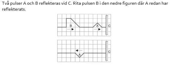 Detta är mitt försök till lösning som är något uppskalat, då vi inte får farten antar jag att det alltid är 3 rutor mellan A och B vilket i min uppskalade version blir 6 rutor. Men hur den reflekterade vågen ska summeras med den ingående vågen förstår jag ej.