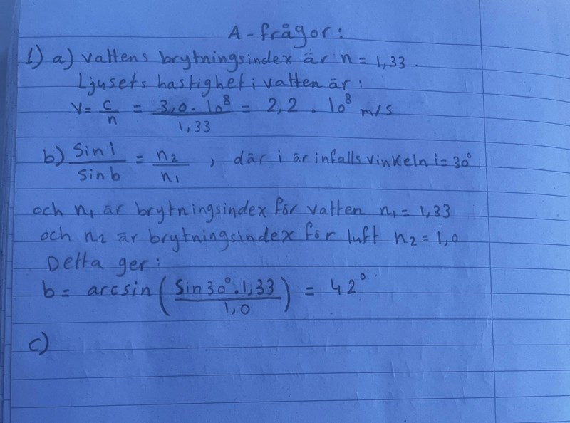 Såhär har jag jobbat med a och b. Men jag vet inte hur jag ska svara på c :(
