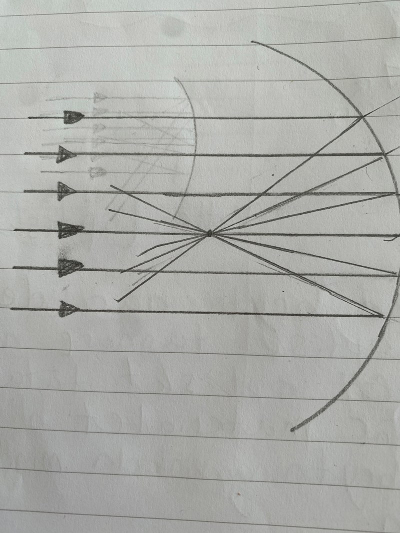 Hade verkligen uppskattat hjälp och en tydlig förklaring på hur och varför man ska göra som man gör.hur ritar jag brännpunkten och strålgångarna för en konkav spegel som har 6 infallande ljusstrålar?