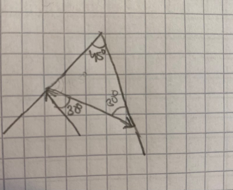 Okej, och då den infallsvinkeln är 30 grader så blir även reflektionsvinkeln 30 grader, dvs såhär?