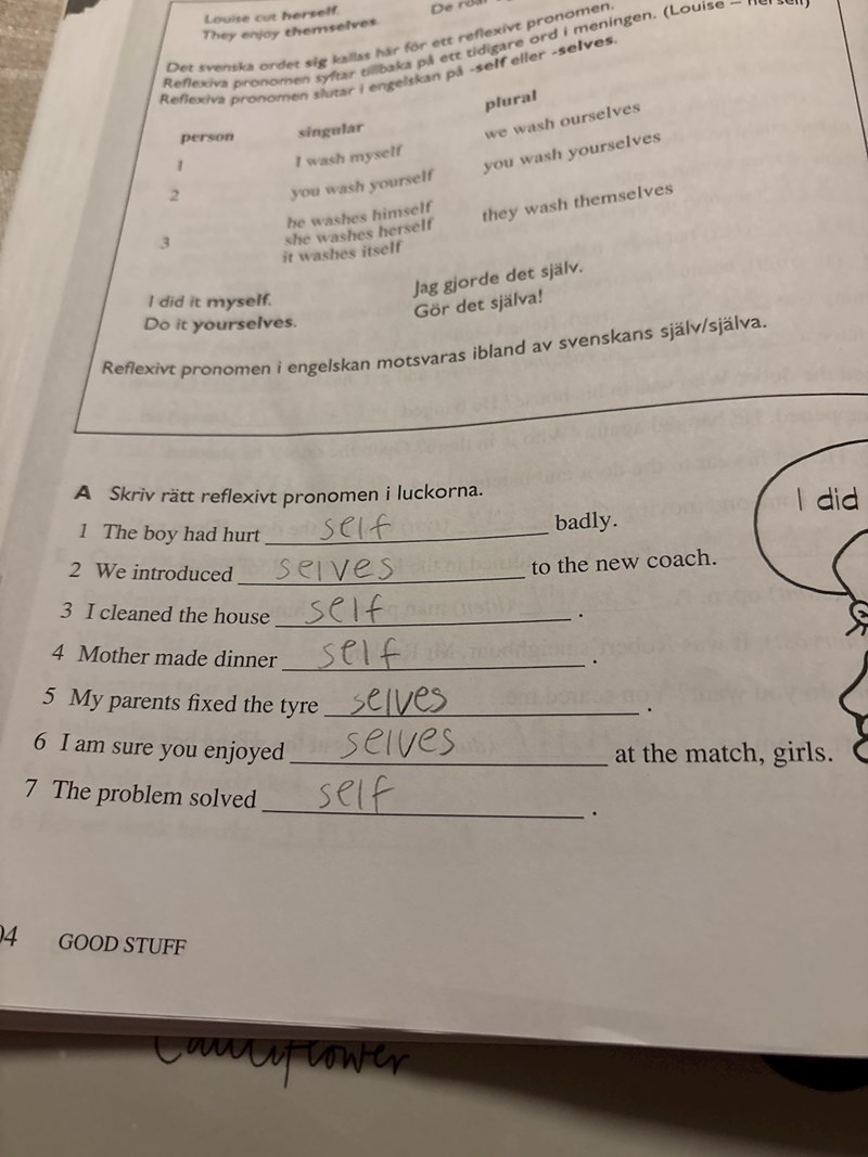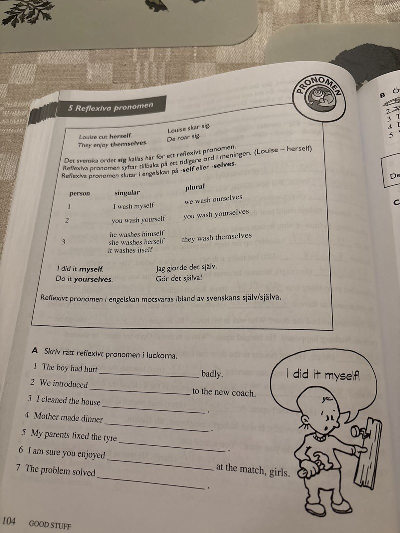 Nummer 6 är yourself i plural, kan du hitta vad det blir då?