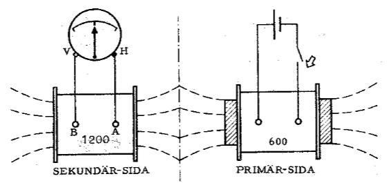Frågan som ställs är följande: "Vilken riktning får strömmen, som induceras i 1200 - varvs spolen? Ge en generell regel!"
