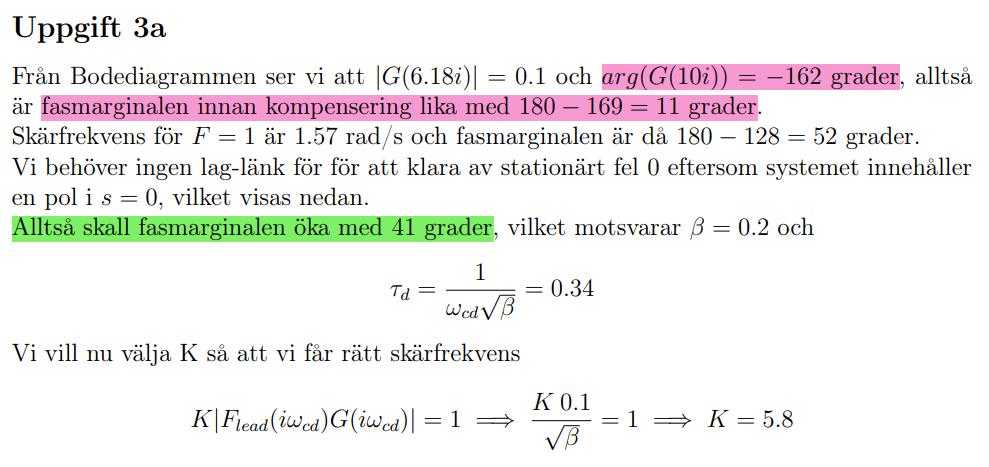 Jag fattar inte varför de blandar in samt fasmarginalen vid , och sen påstår att fasmarginalen behöver höjas 41 grader (11-->52) när det enligt mig ska höjas 34 grader (18-->52).