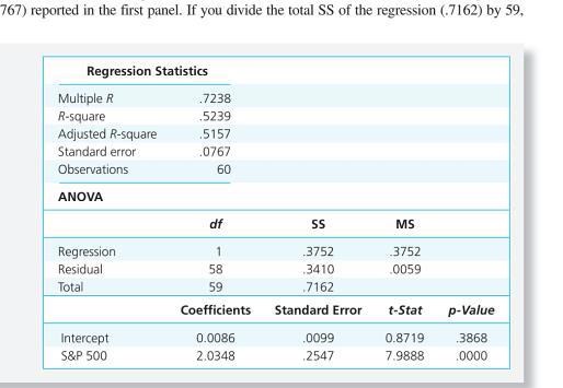 Vad är "variance of the error term" utifrån tabellen? Skall det inte vara RMS = 0,0059? Ifall man kollar på bilden från boken så verkar dem dock istället använda 0,3410. Har jag tänkt fel?