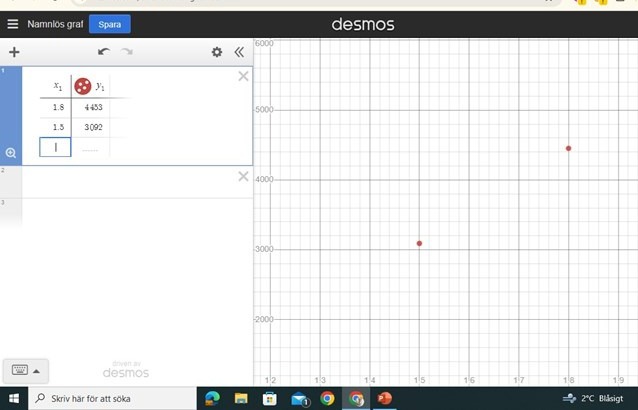 Jag har gjort en tabell i desmos med värdena, men jag förstår inte hur jag ska veta vilken typ av funktion detta är, har ni några tips eller förslag?