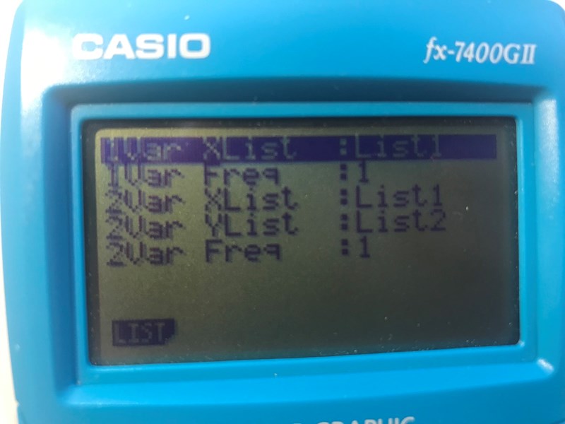 För regressionsanalys på CASIO: skriv in värden i lista 1 och lista 2 för x och y värden, klicka CALC för calculate, klicka REG, klicka X, klicka ax+b och så får du linjär regression (linear regression)