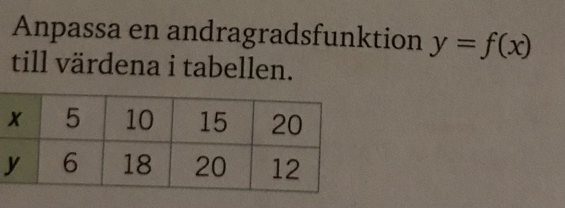 "sätta in tre värden på x. Då får du ett ekvationssystem med a, b och c."