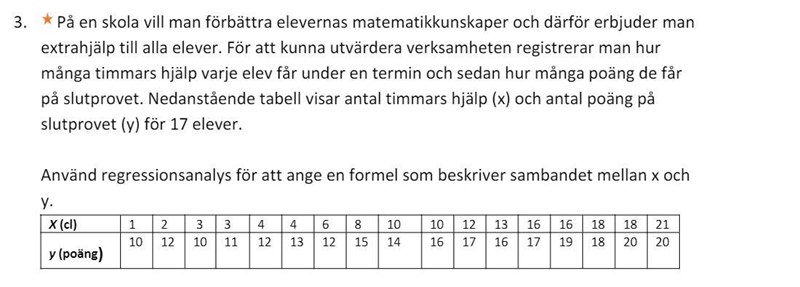 I kapitel 4 i matematik 2b boken så är alla regressionsanalys uppgifter något med räknare, hur löser jag dom ens? Känner mig oförberedd inför provet. Någon som kan hjälpa mig förstå dessa bättre? Och har jag löst uppgiften korrekt eller är jag helt ute o cyklar? Varje uppgift jag gjort i boken så har mitt svar blivit lite annorlunda än facit, men ändå hyffsat nära, jag antar att det är för att jag löst utan räknare, är det normalt att man inte alltid får exakta värden när man löser sådana uppgifter själv?