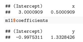 Det enda som jag har givet i uppgiften är att följande notis om detta: Notering: Med ”samma” menas naturligtvis inte att regressionskoefficienternas värde är exakt lika, utan givet y = a + bx undersök om x = (y − a)/b håller.