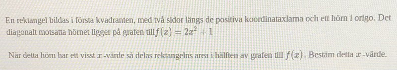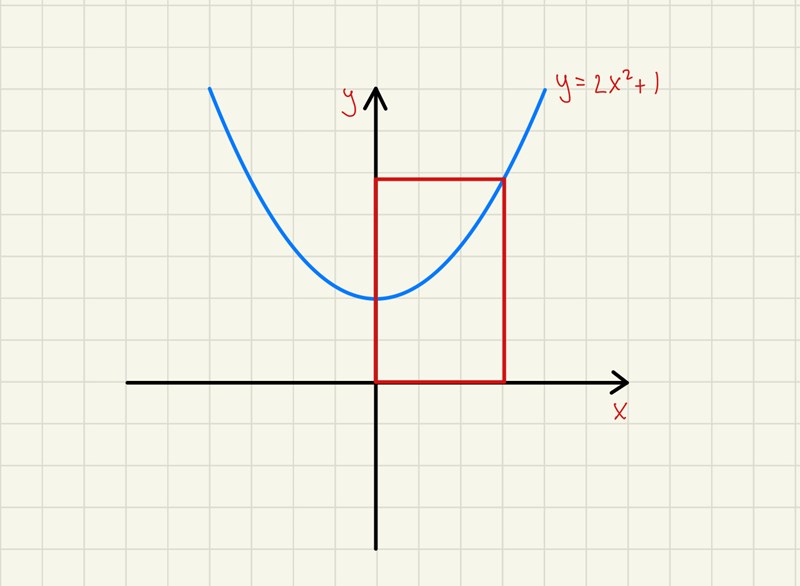 Det ända jag kmr på är att döpa rektangelns sidor till x i bas och 2x^2+1 i höjd.