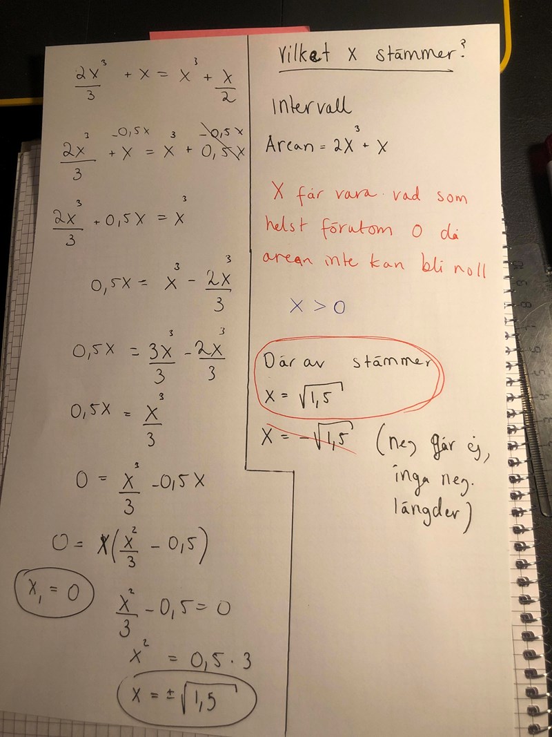 Jag förstår vad ni menar, tänkte fel bara. Nu har jag försökt lösa ut x men det blir bara noll. Vad gör jag felet någonstans?