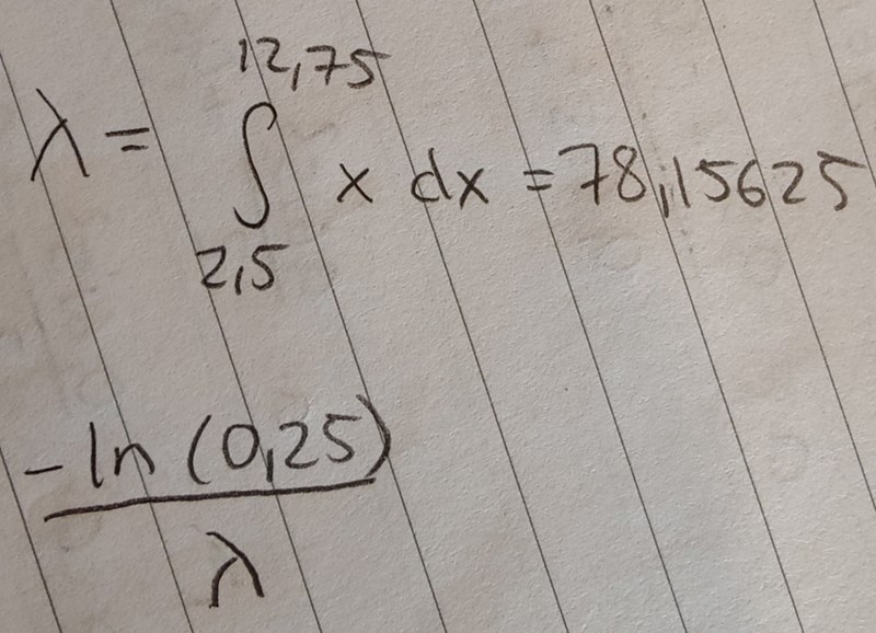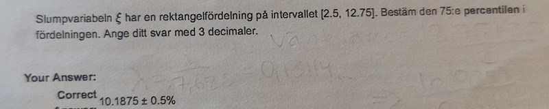 I den 75:te percentilen finns 75% av fördelningen. Hur långt måste vi gå från 2,5 för att inkludera 75% av rektangeln? :)