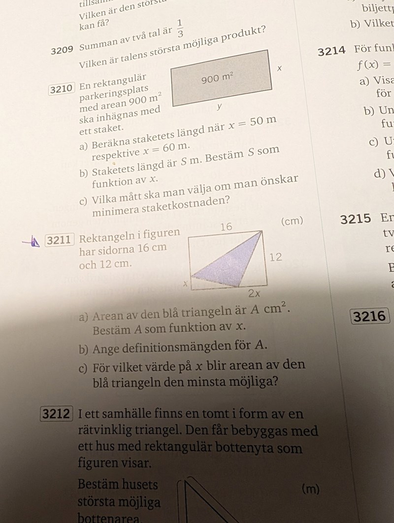 så har den funktionen ett maximum. Jag tycker däremot att triangelytan blir