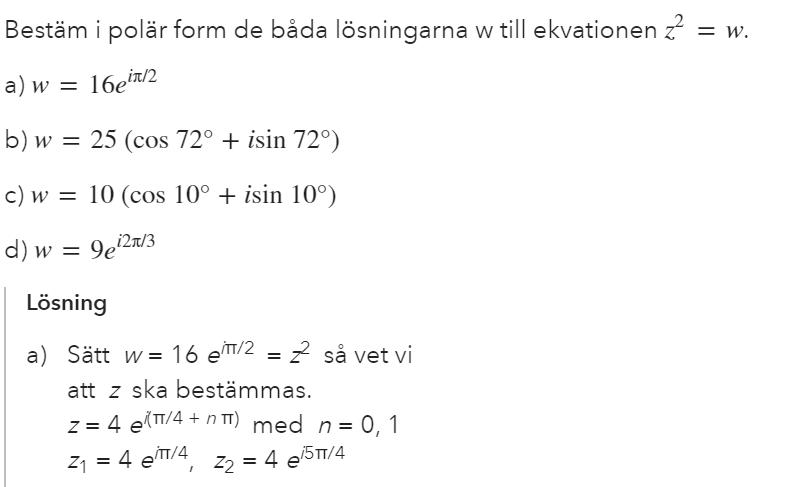 Jag hade denna uppgift där de ber mig lösa uppgiften på polär form, men deras svar är i formen.