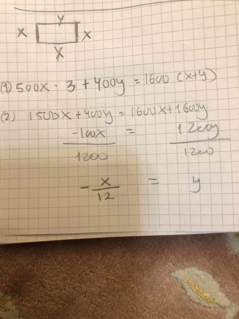 Arean 1600 ger sambandet mellan x och y, dvs xy=1600