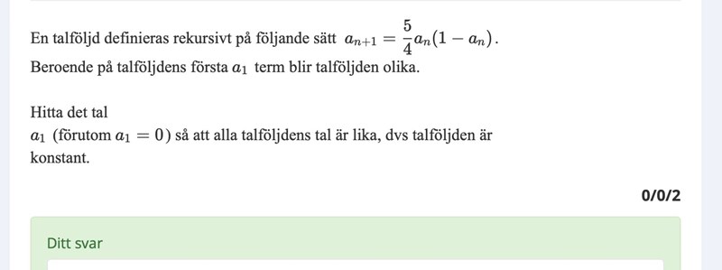 Försök hitta a1, d.v.s. lösa ekvationen 5/4 * a1(1 - a1) = a1