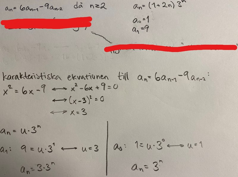 Sedan står det "lös endast ekvationen, vilket jag tolkar som att man ska lösa rekursionsekvationen, vilket jag inte får rätt på: