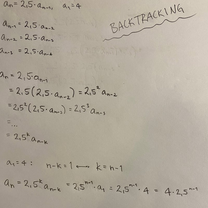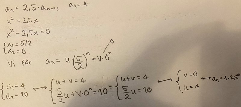 Jag förstår inte backtracking till denna uppgift och får inte rätt på den "karakteristiska ekvations-lösningen".
