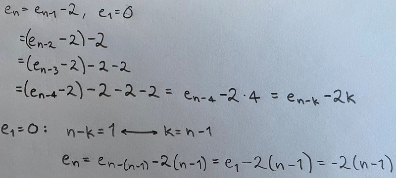 Rita upp eller "se det i huvudet". Du får en rät linje e=-2n+2 eller e=-2(n-1) om du föredrar det.