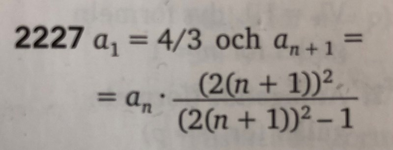 Smaragdalena skrev:De skriver "rekursionsformel för högerledet", och då blir det en faktor när n = 1, två faktorer när n = 2, tre faktorer när n = 3 och så vidare.