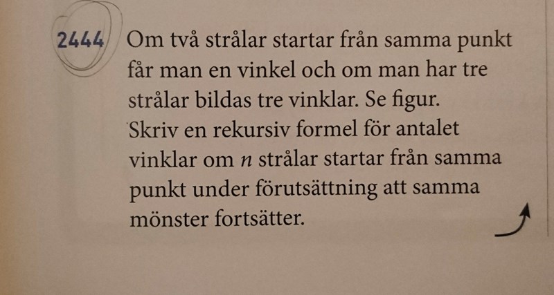 När man har stycken linjer så bildar de stycken vinklar. Texten jag skrivit ger den rekursiva formeln