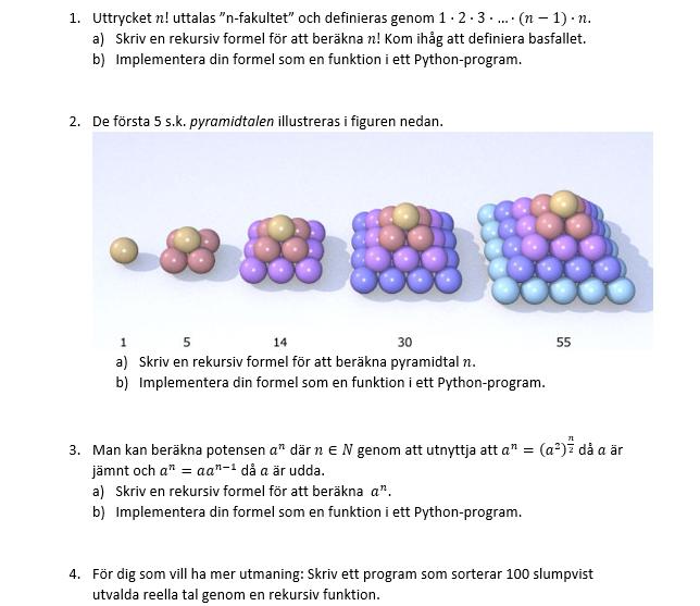 Men problemet är att jag har stora svårigheter att programmera. Jag behöver tydliga steg för att kunna lösa problemen, men jag kan inte. Jag fick dessa frågor från min lärare, jag försöker lösa dem men jag vet inte varför jag gör varje steg, kan någon hjälpa mig att hitta steg som jag kan följa för att lösa dessa problem och se till att jag löser korrekt?