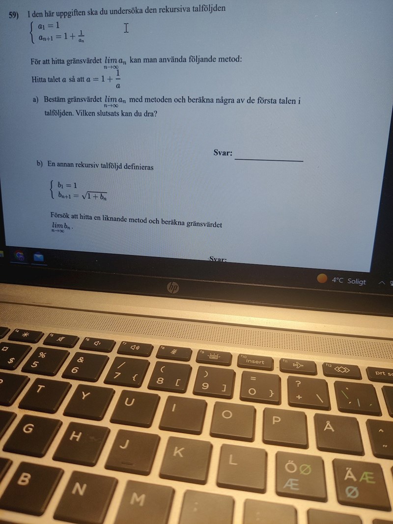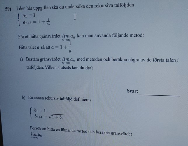 För a) har jag har räknat a1, a2, a3 osv, men kommer inte fram till något svar (korrekt svar)