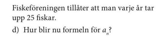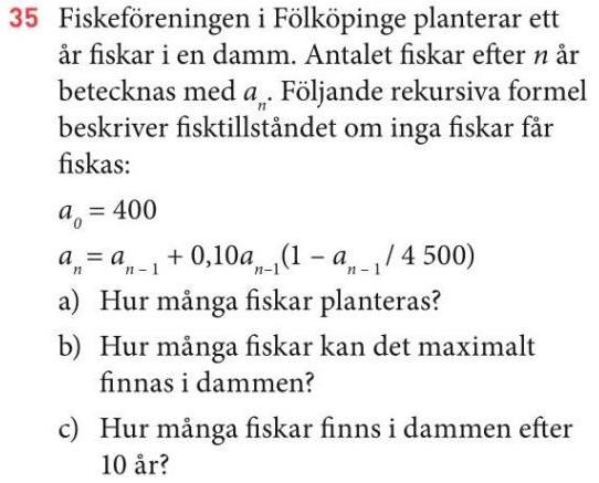 Jag har räknat ut antalet fiskar efter ett visst antal år med hjälp av formeln: