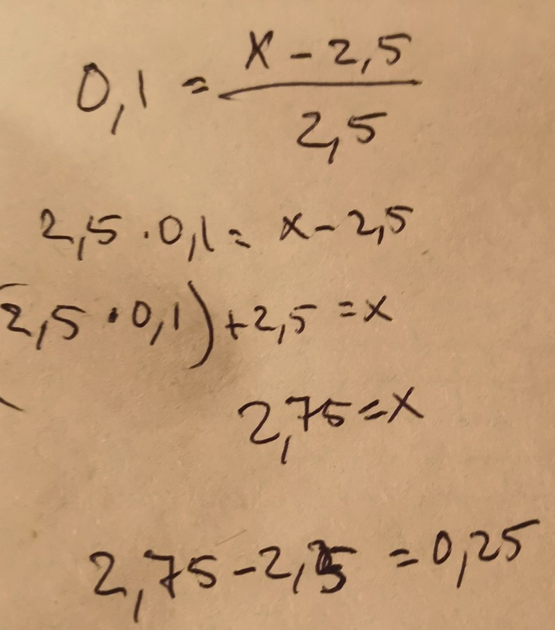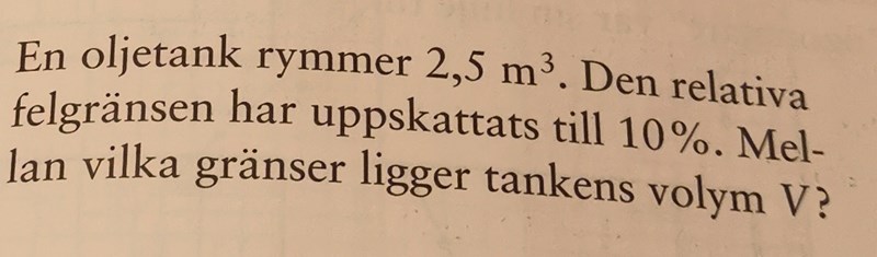 Förmodligen har du inte avrundat tillräckigt mycket. Är facit 2,2< x < 2,8 m3?