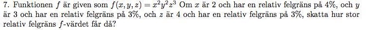 Ja, så mycket förstår jag men jag vet inte hur jag ska använda det för att göra en uppskattning på relativfelgränsen i mitt uttryck. Ska jag sätta typ x=(2±0.08)2 och detsamma för y, z i mitt funktionsuttryck?