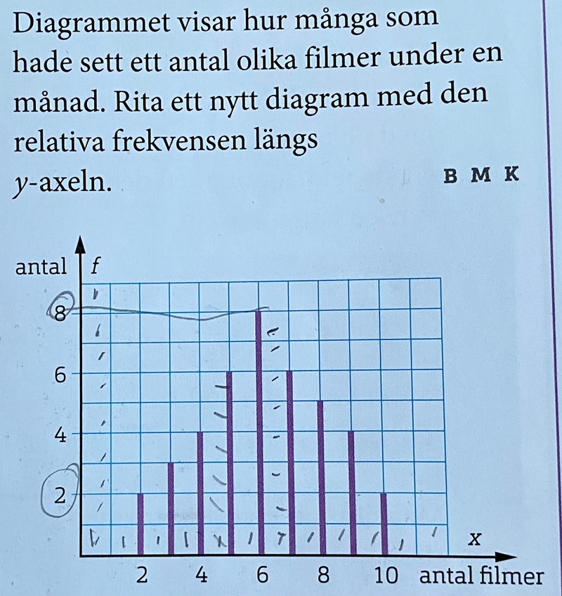 T.ex är den relativa frekvensen för 5 filmer = 6/40