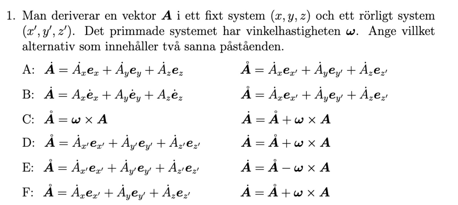 Svaret är D. Men jag tycker att A ser helt rätt ut också? Det är exakt samma till höger i A som det är till vänster i D. Samt att det som står till vänster i A står exakt i boken också: