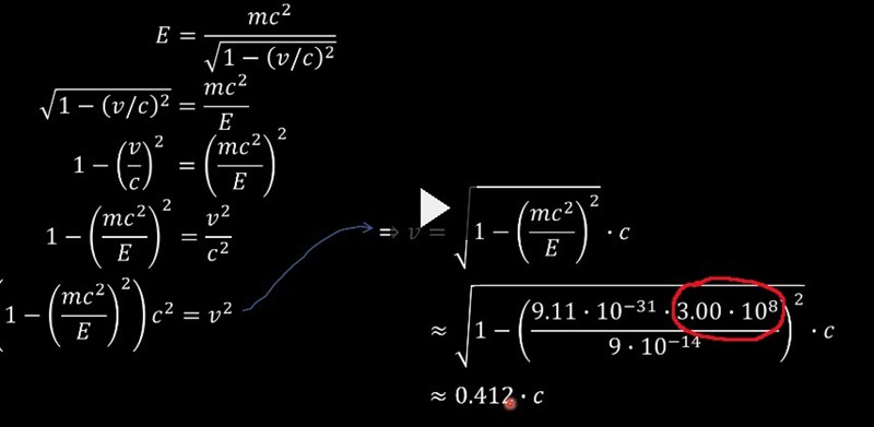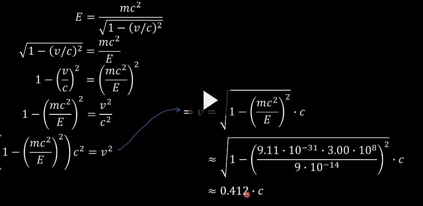 Hej, Behöver hjälp med följande uppgift: "Vilken fart har en elektron med totala energiin 9*10^-14 J"