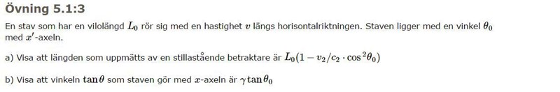 Tidigare konstaterade du att en stav som ligger parallellt med x-axeln får en ny längd L enligt: