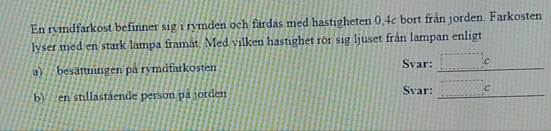 Så i detta fall är det nog tänkt att man skall svara att hastigheten är c i båda fallen.