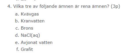 (Jag antar i alla fall att rent ämne menas här med bara ett substans och ingen blandning)