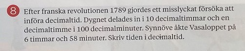 S åkte loppet på 2 decimaltimmar och 90 decimalminuter.
