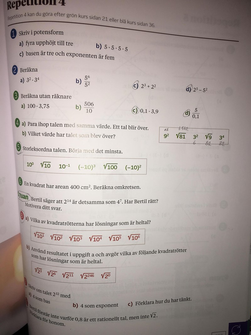Klarar du dem så klarar du 3^2 och roten ur 9 också.