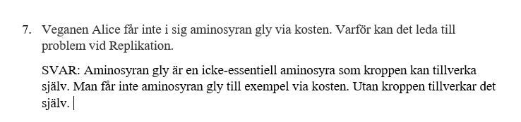 Men frågan är varför det kan leda till problem vid replikation, så man måste ju blanda replikation i frågan. Men i mitt svar har jag inte nämnt något för att jag visste inte riktig att aminosyran glycin finns med i de proteiner som vi äter
