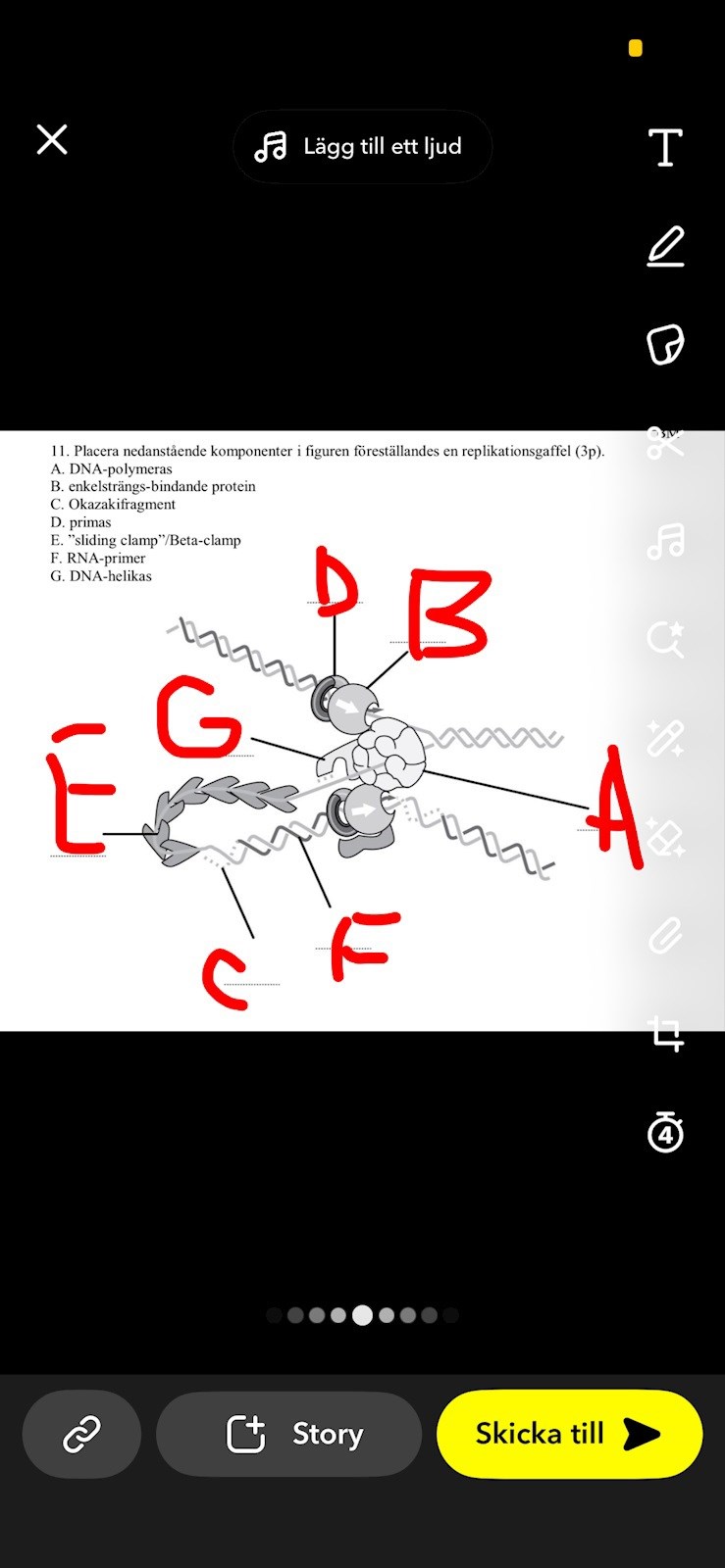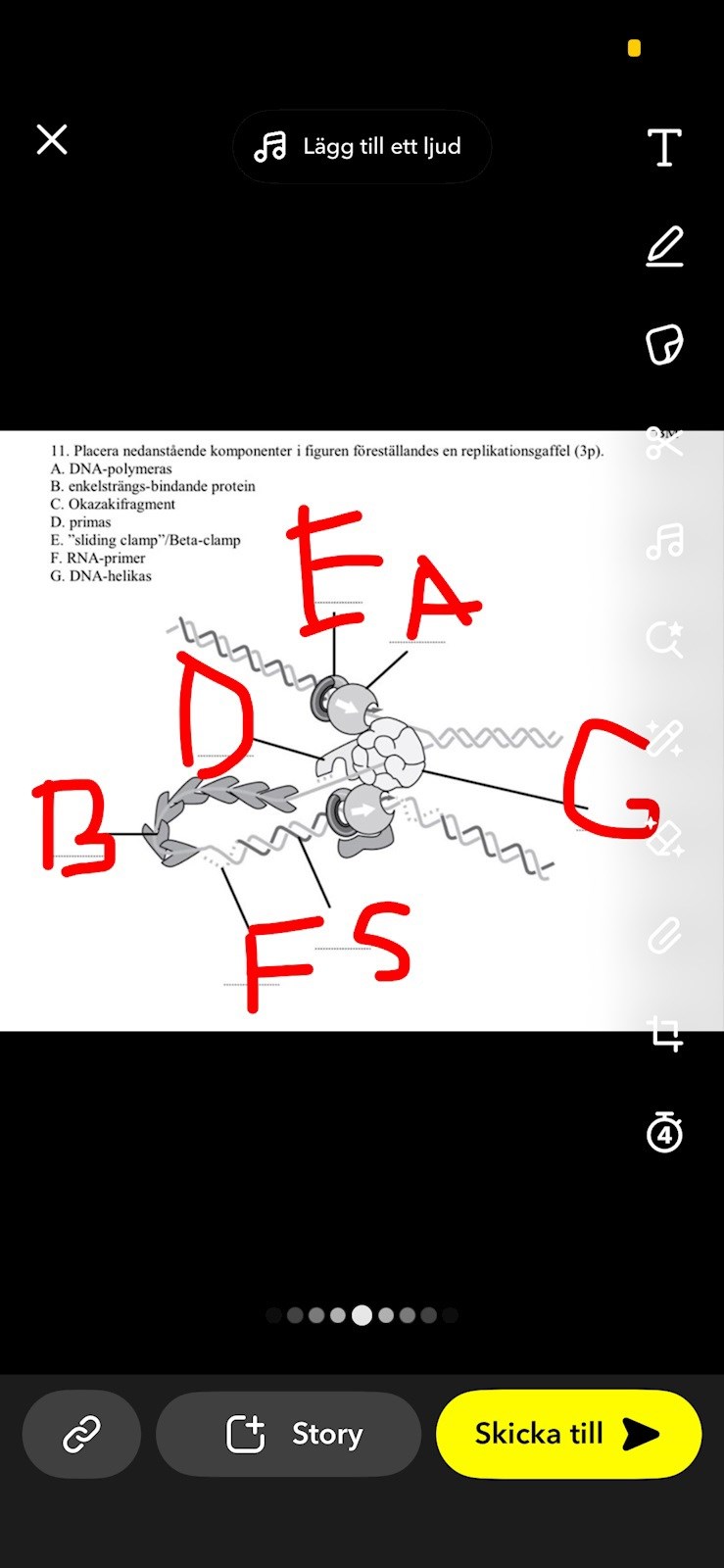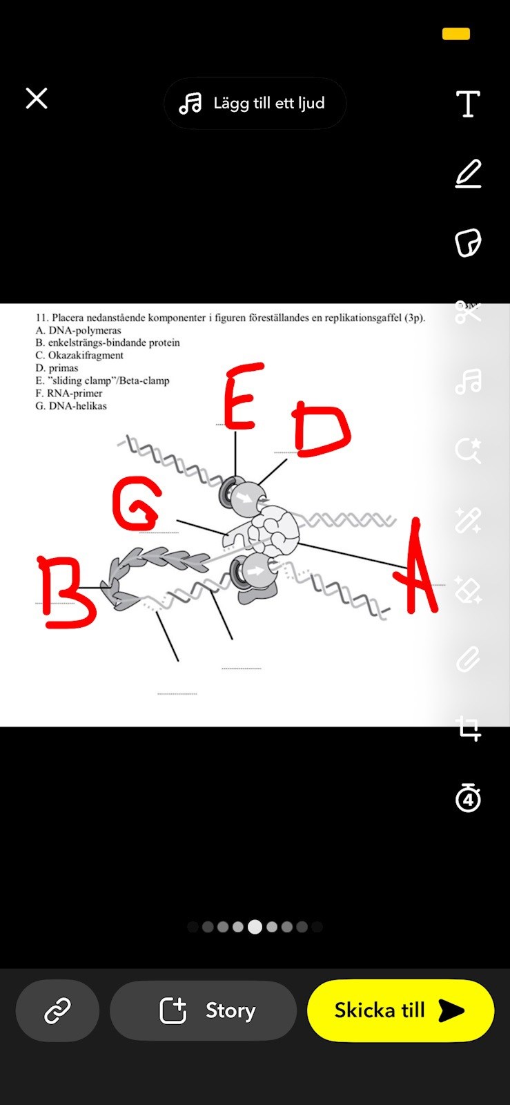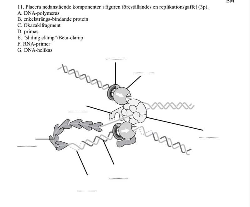 Jag tror dessa är rätt men behöver hjälp med vart rna primer och okazakifragmenten ligger