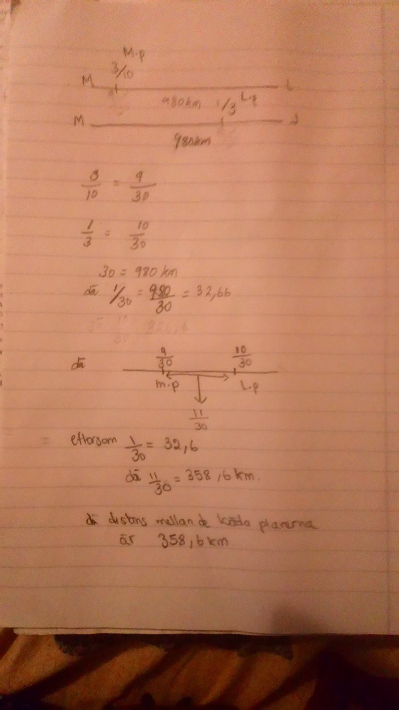 På a). 1/3 av 980=326. 3/10 av 980=294. 294+326=620. 980-620=360.