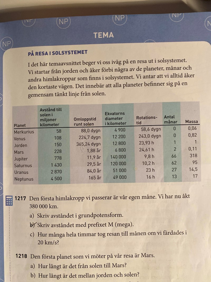 Om du vill skriva 380000 km med prefixet M, skriv så här 0,38*106 de frågar efter prefixen du behöver inte tänke på att skriva i grundpotensformen.