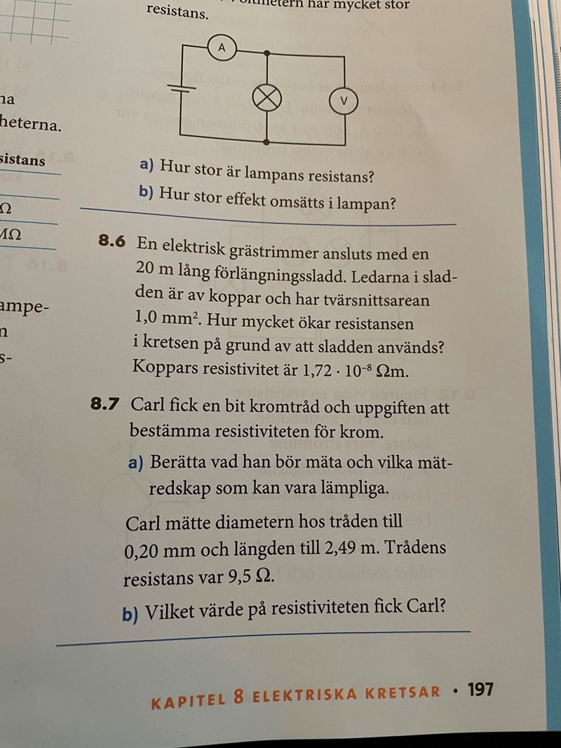 Du har ledarens tvärsnittsarea i uppgiften, men räkna om den till m2. När det gäller längden håller jag med Laguna.