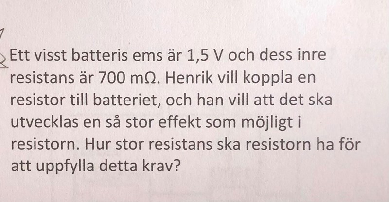 Den maximala effekten får man om den yttre resistansen är lika stor som den inre resistansen? Stämmer detta?