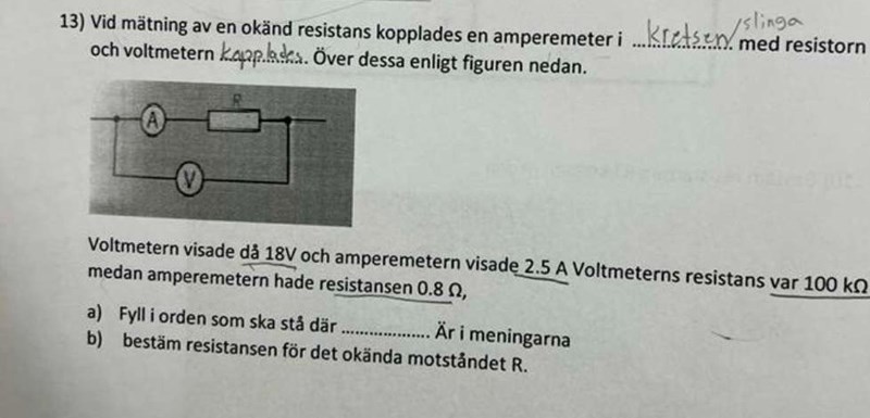 Hur ska jag räkna resistansen och har jag fyllt orden rätt?