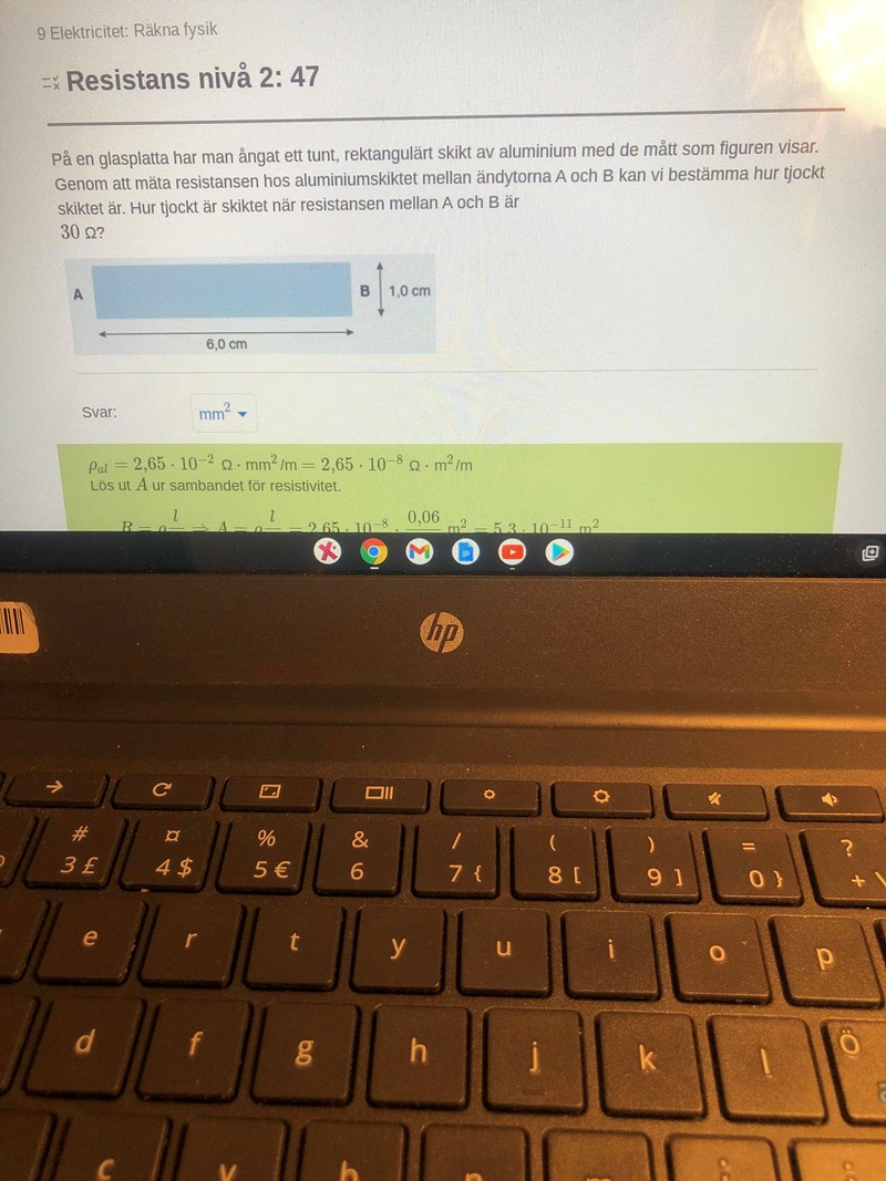 Får du fel var jämfört med facit? (Jag tycker man skymtar lösningen i nederkant på din dator)