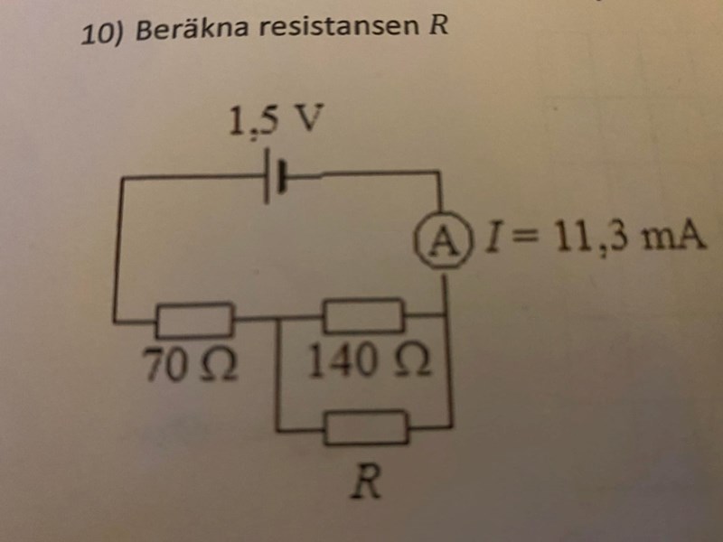 R = U/I Då blir 1,5/11,3 . 10^-3 men jag får inte svar