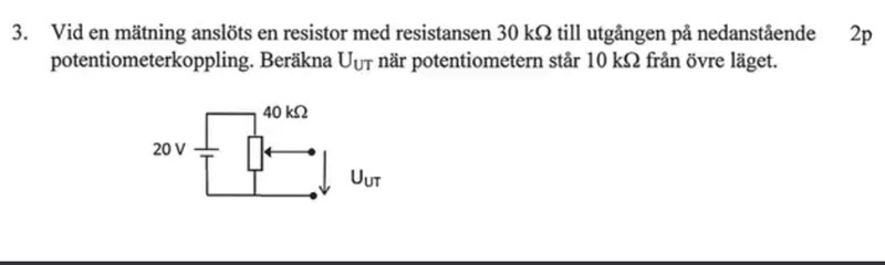 Hej! Jag förstår ingenting av den här frågan. Kan någon förklara vad det är som frågas och hur man kan beräkna det? Det enda jag fattar är att en resistor med 30Kohm är kopplad